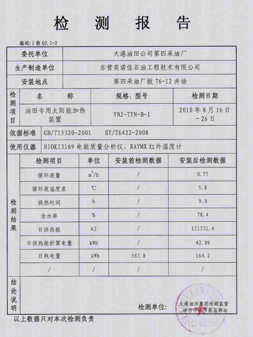 大港油田集團監(jiān)測監(jiān)督評價中心檢測報告